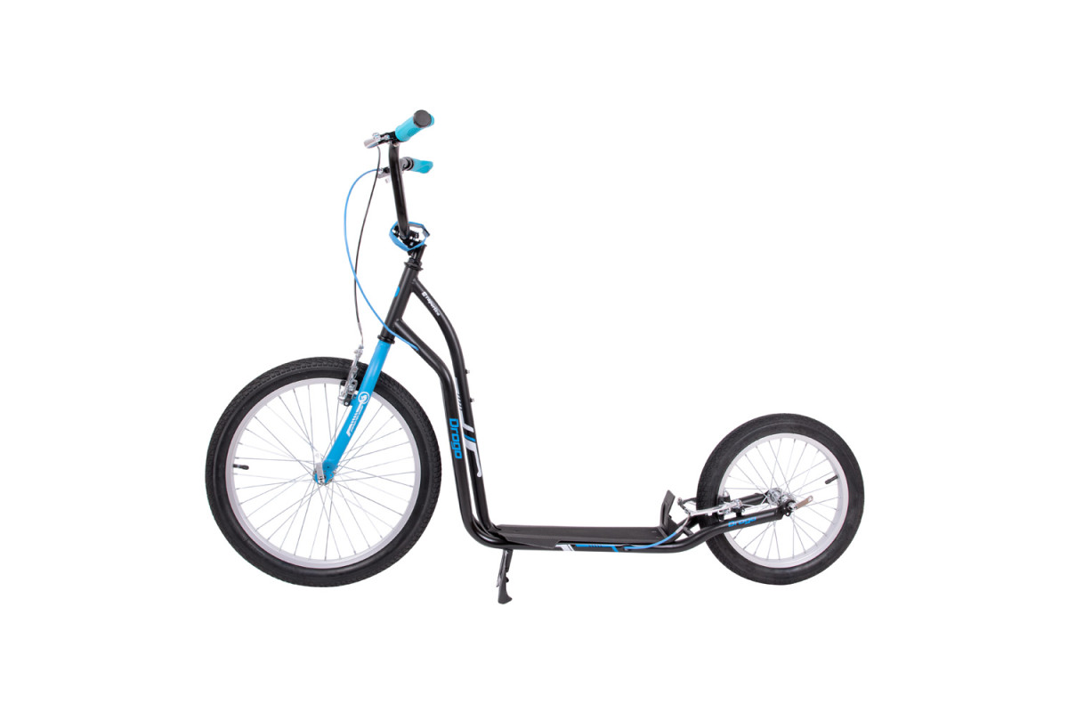 Завдяки регульованим за висотою кермам самокат оптимально підходить для дорослих зі зростом від 155 до 195 см. Безпеку гарантують ефективні V-Brake гальма на обох колесах, ергономічні гумові грипси.