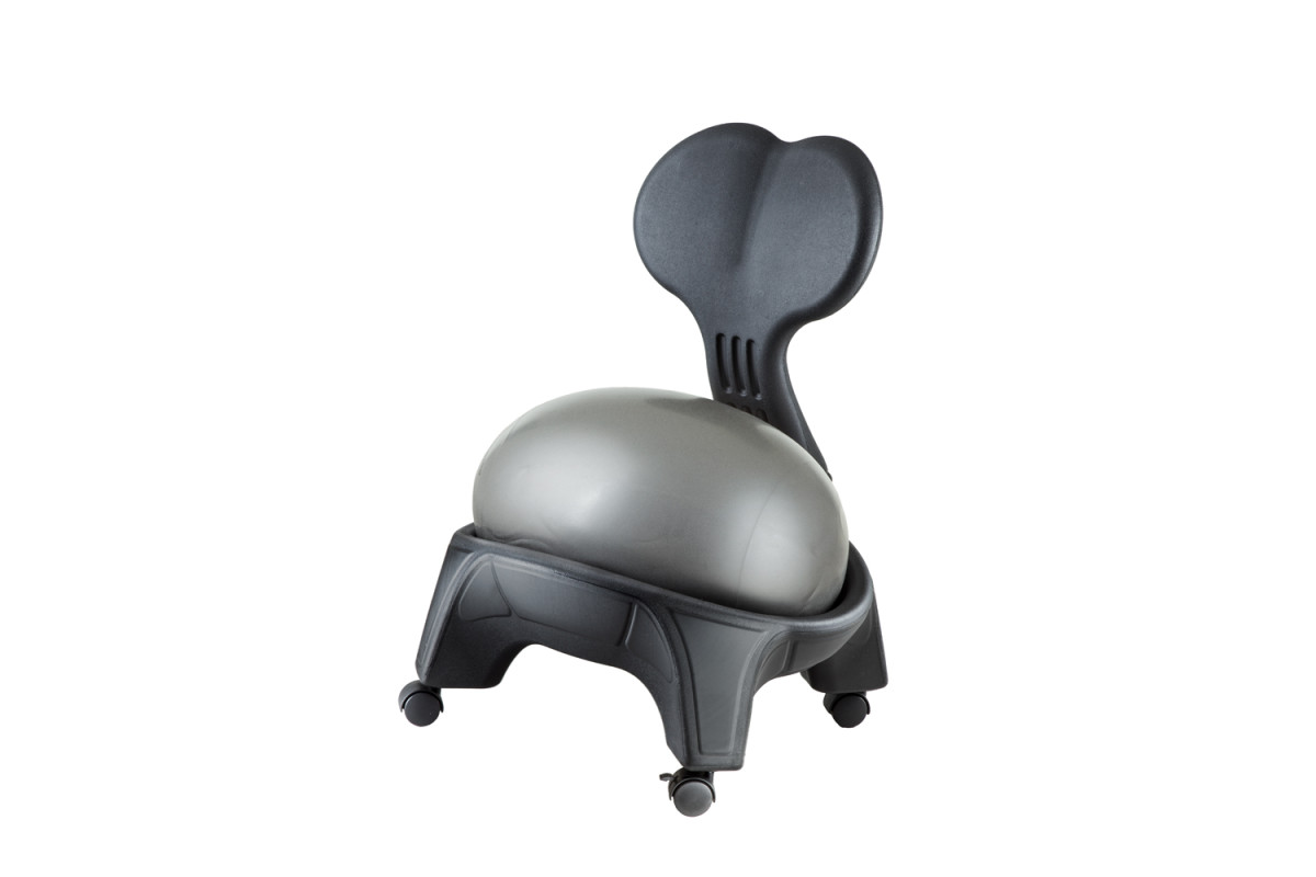 Крісло розроблено для забезпечення максимальної безпеки та комфорту використання. Конструкція оснащена практичною спинкою, яка ідеально коригує положення поперекової частини і дає відчуття стійкості. Чотири нековзні колеса забезпечують легке переміщення на стільці в офісі або кімнаті. Як тільки колеса заблоковані, стілець стає традиційним стаціонарним кріслом. Вся конструкція легко знімається, потім м’яч можна використовувати як інструмент для занять спортом, релаксації та реабілітаційних вправ.