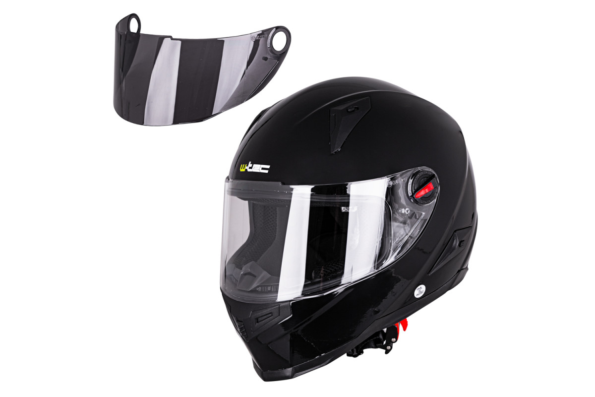 Більше того, цей шолом має другий тонований козирок, який стане в нагоді, коли ви катаєтеся на сонці. Козирок легко замінити. Висока якість виготовлення, високий рівень безпеки, невелика вага та відносно низька ціна роблять інтегральний мотоциклетний шолом W-TEC NK-863 популярним аксесуаром для мотоциклів.