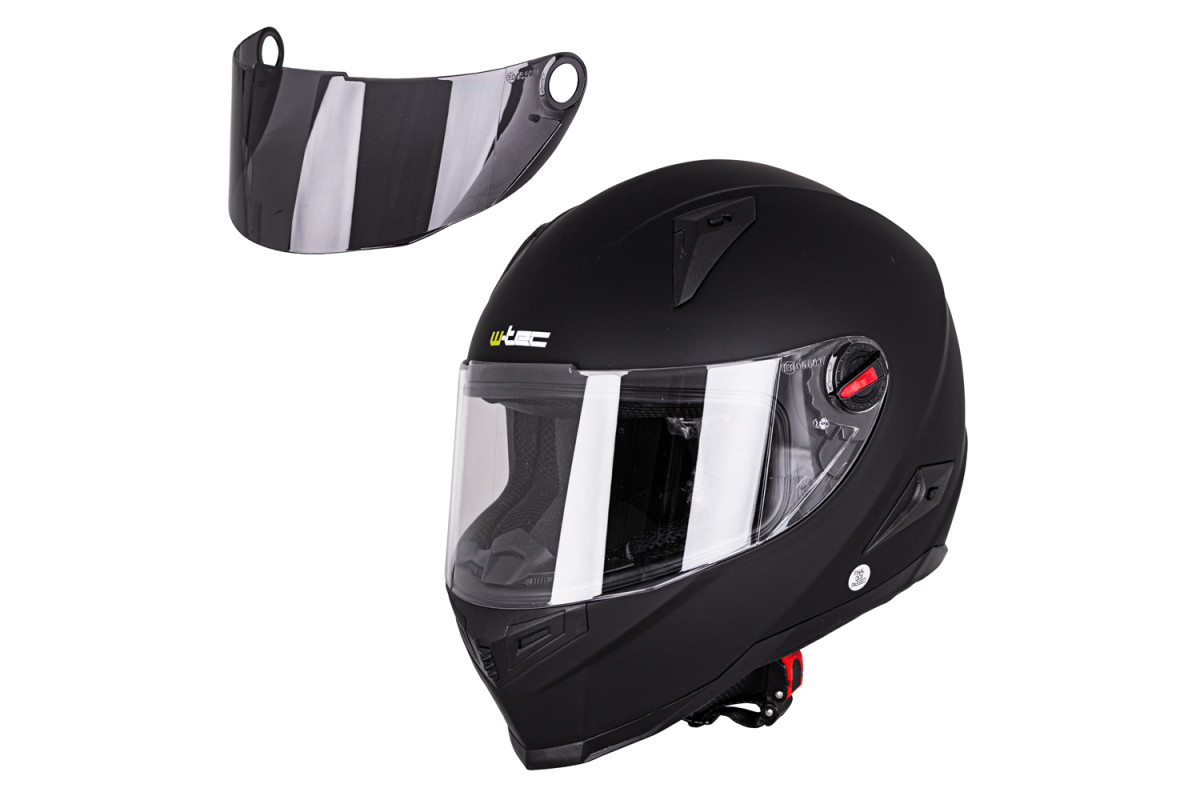 Більше того, цей шолом має другий тонований козирок, який стане в нагоді, коли ви катаєтеся на сонці. Козирок легко замінити. Висока якість виготовлення, високий рівень безпеки, невелика вага та відносно низька ціна роблять інтегральний мотоциклетний шолом W-TEC NK-863 популярним аксесуаром для мотоциклів.