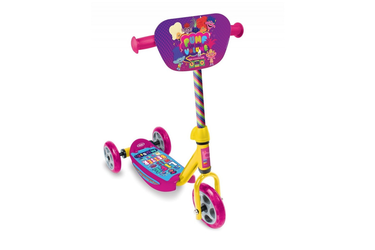 В Дитячий Tri Scooter Тролі є стабільним і безпечним самокат з трьома колесами для кращої стабільності. Цей легкий скутер не має гострих країв і має велику протиковзку деку, щоб захистити вашу дитину під час їзди. Кермо з регульованою висотою та зручними ручками з ПВХ роблять цей скутер придатним для дітей віком від 2 років (залежно від зросту дитини). Його класний дизайн робить дитячих тролеїв троти скутерів ідеальним подарунком для кожного шанувальника Тролів.