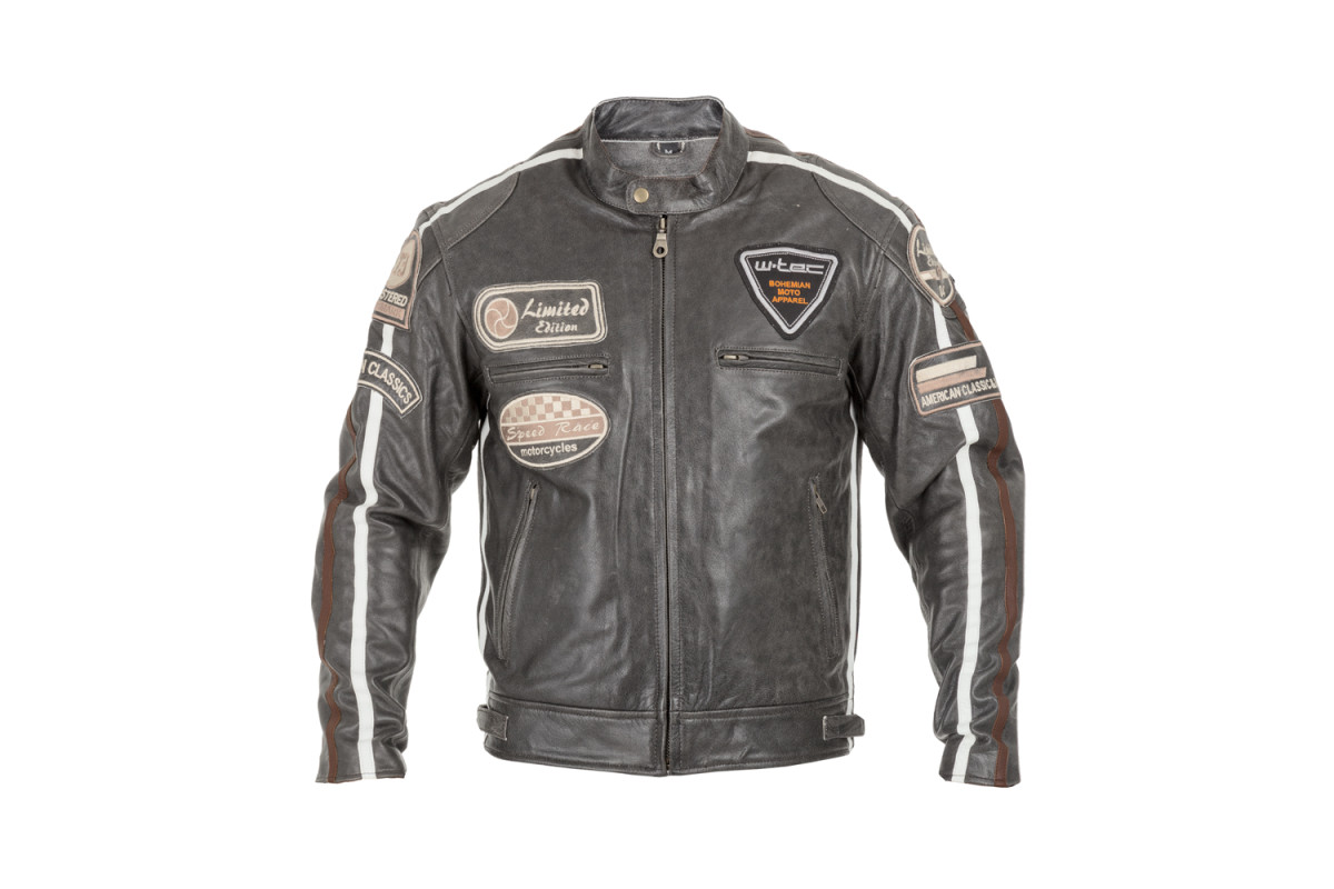 Стильний дизайн із «крутими» нашивками робить чоловічу шкіряну мотоциклетну куртку W-TEC Antique Cracker популярною курткою.