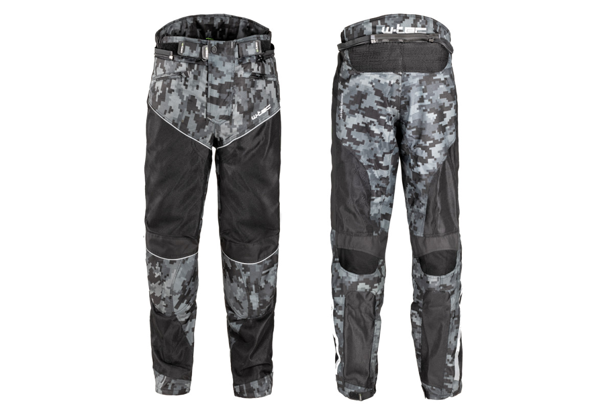 Чоловічі літні мотоштани W-TEC Джори з привабливим малюнком камуфляж добре провітрюваних мотоцикл брюки. Однією з головних переваг є повітропроникний внутрішній вкладиш та великі вентиляційні отвори на стегнах, литках та гомілках. Вони забезпечують чудову циркуляцію повітря, яка стане в нагоді в спекотні літні дні. У дощові дні ви також можете додати знімну кліматичну мембрану.