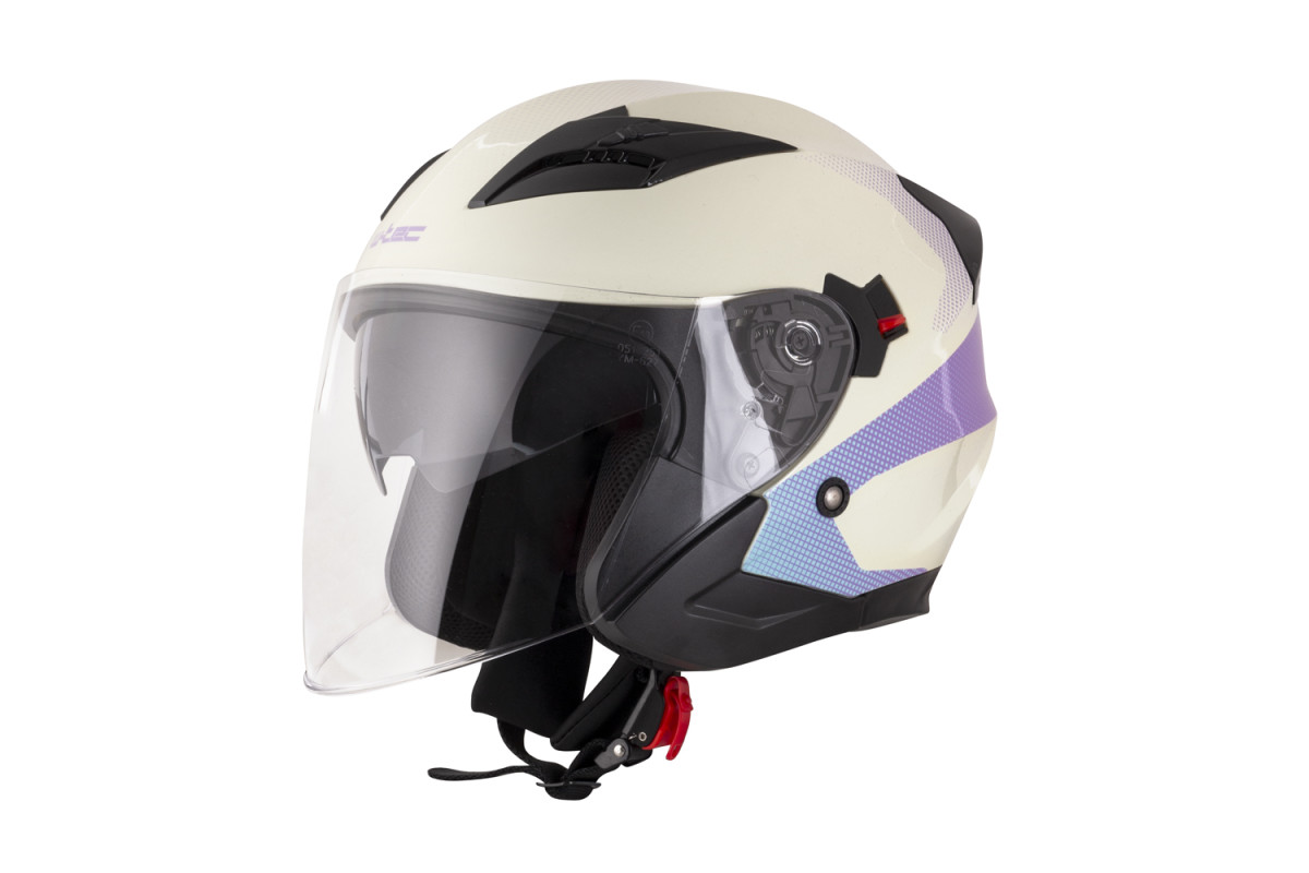 Мотоциклетний шолом W-TEC Yekatero сучасний з відкритим обличчям шолом призначений для скутерів, чопперів і повільніших на дорозі мотоциклів. Він має не тільки відкидний козирок, але і висувний сонцезахисний козирок, який забезпечує захист від сонця під час їзди. Сонцезахисним козирком можна управляти за допомогою важеля збоку шолома.