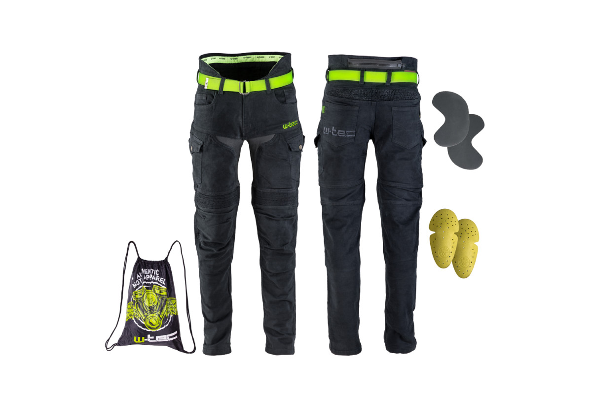 Чоловічі мотоджинси W-TEC Aredator доставуляються з флуоресцентним ременем.