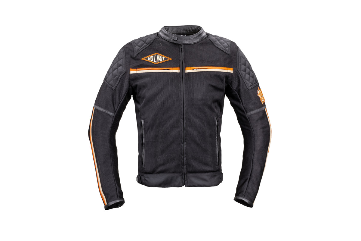 Куртка у вінтажному стилі з плямами виглядає як шкіряна куртка, але здебільшого виготовлена з дихаючої сітки, що дозволяє повітрю надходити, забезпечуючи водію провітрювання у спекотні літні дні. Однак куртка має шкіряні елементи, такі як декоративні смужки та подоли. Елегантні пришиті панно на плечах надають куртці приємний, старовинний вигляд.
