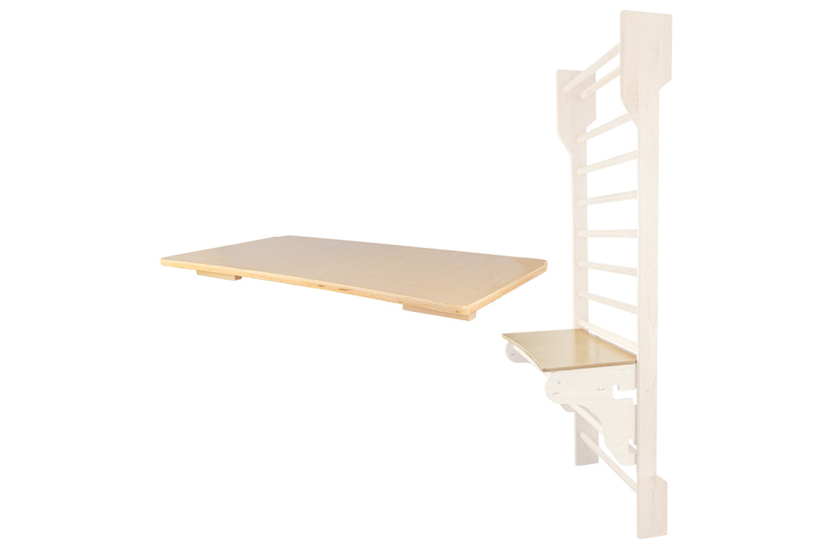 - Тверда дерев’яна стільниця з ялинового дерева, яка перетворює натяжну планку в практичний стіл