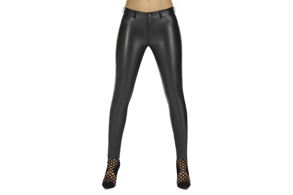 Здавалося б, простий крій, темний колір зроблять ваші ноги ще стрункішими. Спеціальний еластичний матеріал не тільки зручний, але й прекрасно підкреслює сідниці і ноги, тримаючи їх якомога щільніше і підкреслюючи їх вигини. Матеріал, з якого зроблені легінси, схожий на шкіру, м’який, регульований і тому зручний.