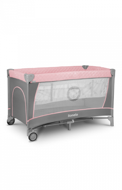 Ліжечко-манеж Lionelo Flower Flamingo 84 х 125 х 41 см - рожево-сірий