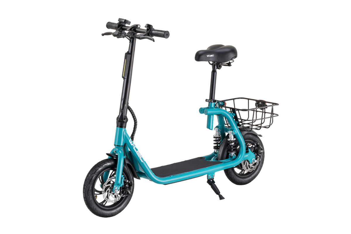 Самокат допоможе вам дістатися до школи, працювати або уникнути пробок. Більше того, це також дозволить їздити на велосипедних доріжках, асфальтованих дорогах або лісових дорогах. Кошик ззаду робить скутер ідеальним для покупок або транспортування менших предметів (до 10 кг). Крім того, ви можете їздити на скутері в місцях, де заборонені двигуни внутрішнього згоряння. Поєднання швидкості та спритності, 12-дюймові надувні колеса та складна задня підвіска можуть впоратися з нерівностями на дорозі. Два дискові гальма забезпечать вам безпеку, а передні та задні ліхтарі покращать ваш огляд в умовах недостатнього освітлення.