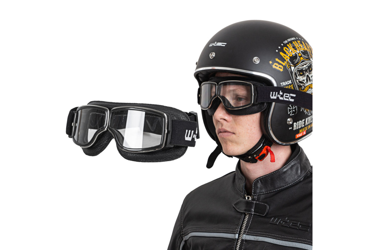 Стильні, ретро окуляри для мотоциклістів W-TEC Epoch, хромована оправа та прозорі лінзи привернуть увагу! Лінзи великі, тому вони забезпечують широке поле зору, тому ви завжди будете знати, що відбувається на дорозі. Підкладка з пінопласту 15 мм забезпечує найкращий комфорт при носінні, а синтетична шкіра доповнює класичний вигляд окулярів. Вбудовані вентиляційні отвори дозволяють циркулювати повітря і таким чином запобігають запотіванню лінз. Більш того, лінзи також мають покриття проти запотівання. Силіконова стрічка на внутрішній стороні ременя регулюється по довжині, щоб утримувати окуляри на шоломі / голові. Стильні окуляри для мотоциклів W-TEC Epoch повернуть вас у старі добрі часи завдяки сучасним технологіям!