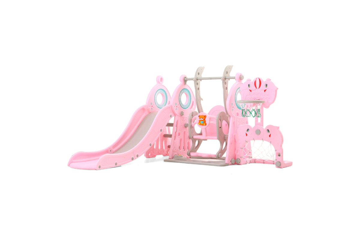 Дитяча гірка з гойдалками 5в1 inSPORTline Multino, 200 х 180 х 120 см - рожево-біла