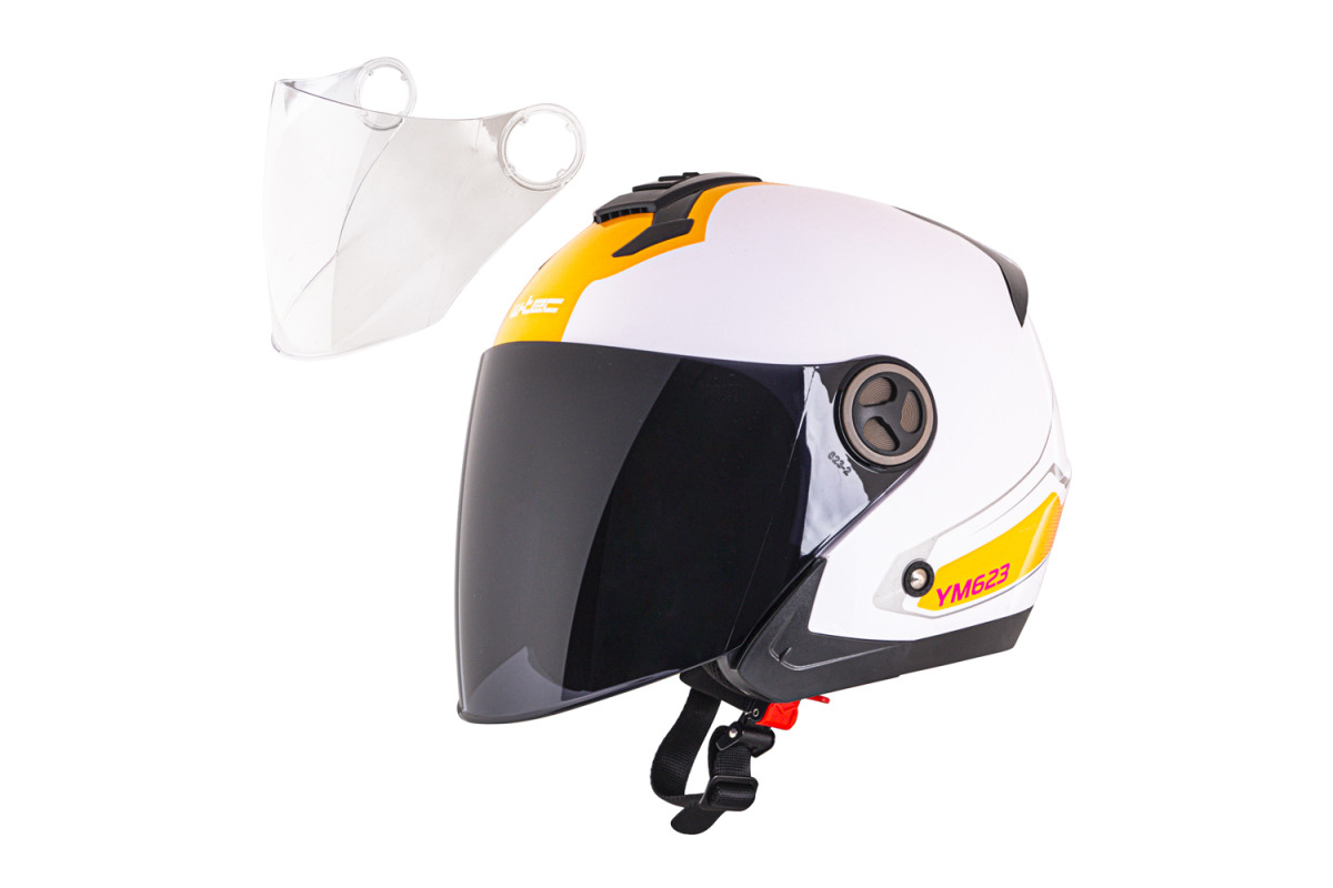 Мотошолом W-TEC Yellamo-це сучасний шолом з відкритим обличчям, придатний для скутерів та повільних дорожніх велосипедів. Він оснащений двома лінзами - темною (на шоломі) та прозорою, які забезпечують хорошу видимість. Він не тільки має відкидний навіс, але і висувний сонцезахисний козирок, що забезпечує захист від сонця під час руху. Верхня вентиляція, що блокується, і міцна підкладка забезпечують максимальний комфорт під час їзди. Ви також можете оцінити просту у використанні швидкознімну пряжку та просту аеродинамічну форму.