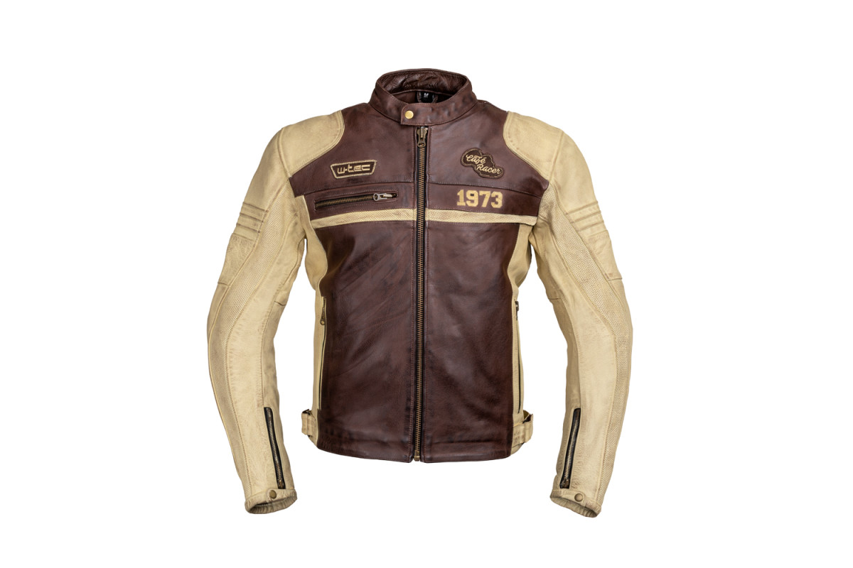 Чоловіча шкіряна мото куртка W-TEC Retro - коричнево-бежевий/M