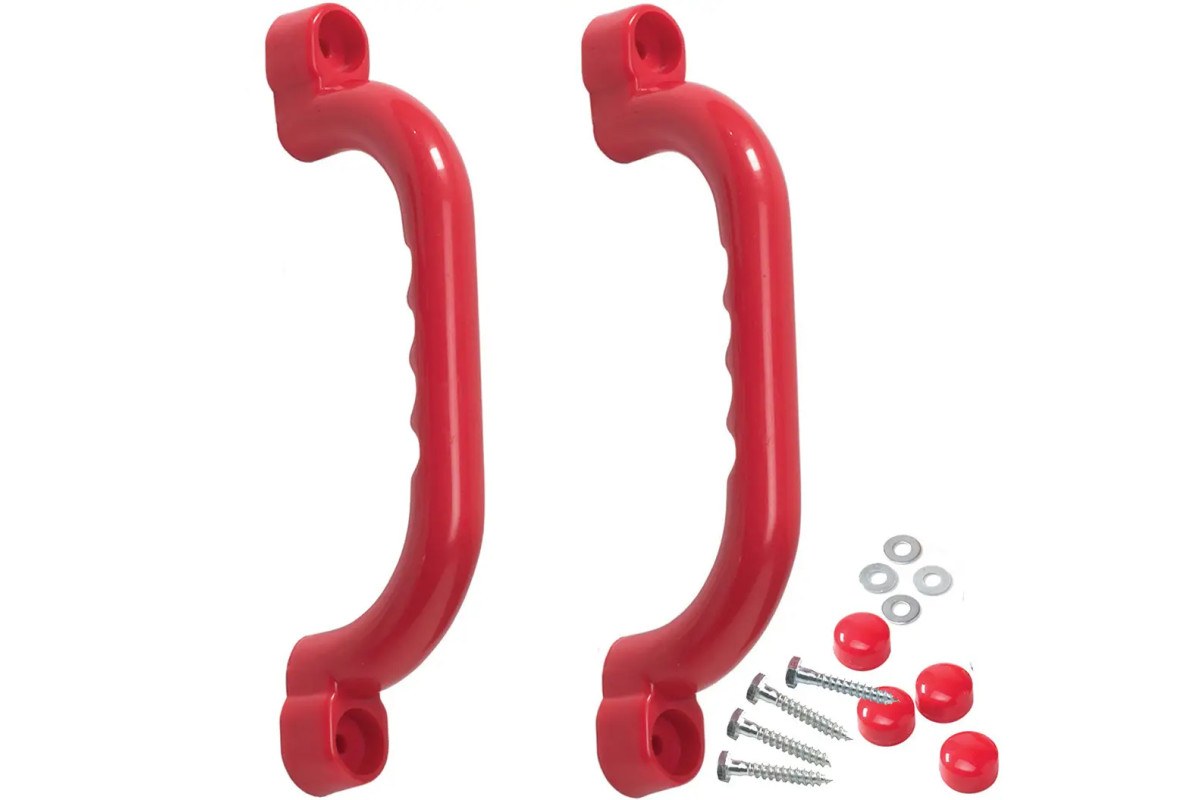 Ці ручки можна розташувати над сходами для лазання або драбинкою, щоб діти могли безпечно піднятися. Ручки можуть бути розміщені перед гіркою, забезпечуючи підтримку малюкам, поки вони сідають. Пластикові ручки доставляються з усіма необхідними гвинтами, шайбами і кришками для болтів, що дозволяє легко прикріпити до будь-якої дерев'яної рами.