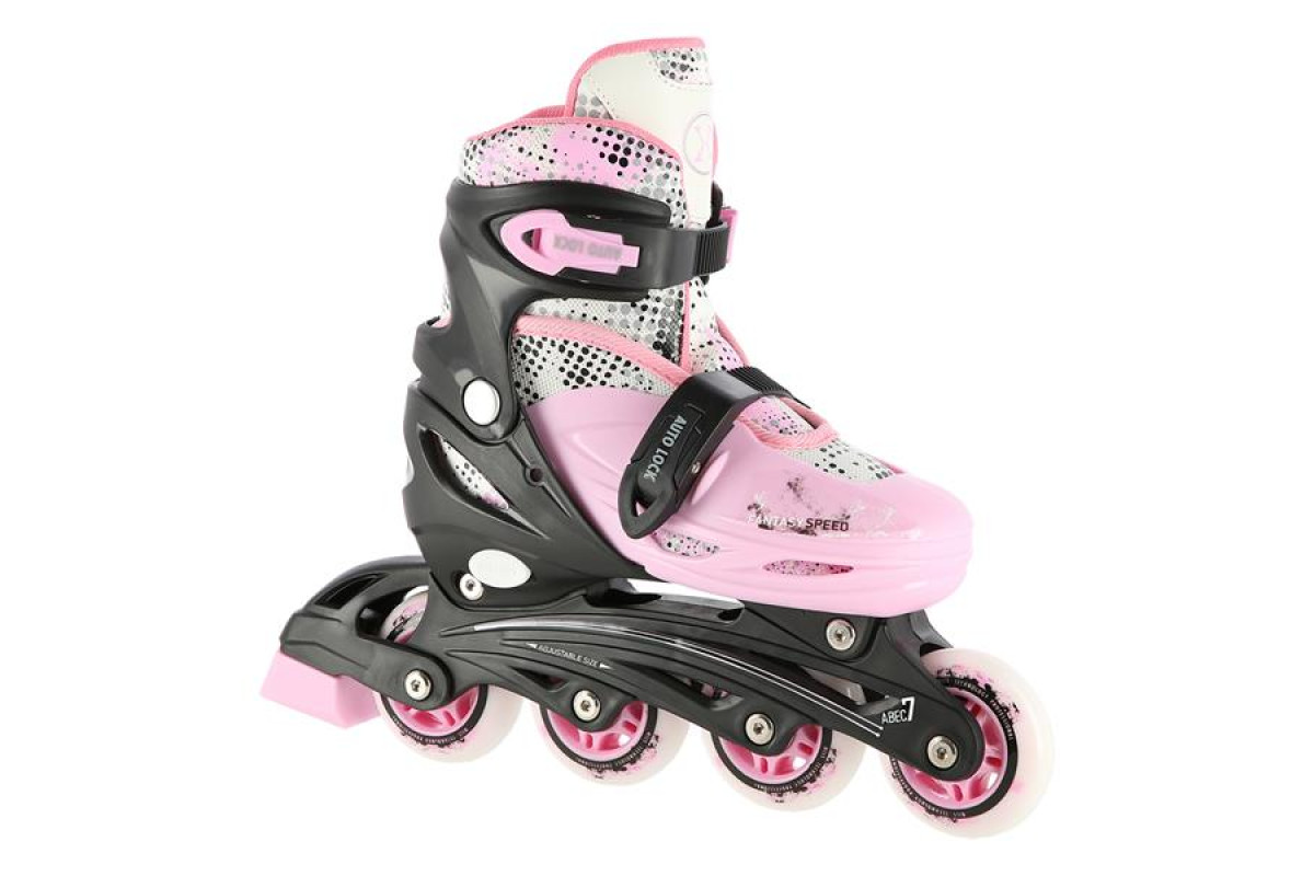 Роликові ковзани NH18331 - це справжнє задоволення від катання. Завдяки можливості поставити додаткове колесо на задню вісь, роликові ковзани функціонально перетворюються на хокейні. Таке рішення допоможе наймолодшим ковзанярам зробити перші кроки в цьому виді спорту. При встановленні додаткового колеса на передню вісь виріб перетворюється на роликові ковзани. Ковзани оснащені спеціальним пластиковим полозом і гальмом, що забезпечує безпеку під час катання. У свою чергу, колеса та підшипники класу ABEC7 забезпечують менший опір коченню, що означає швидшу їзду.