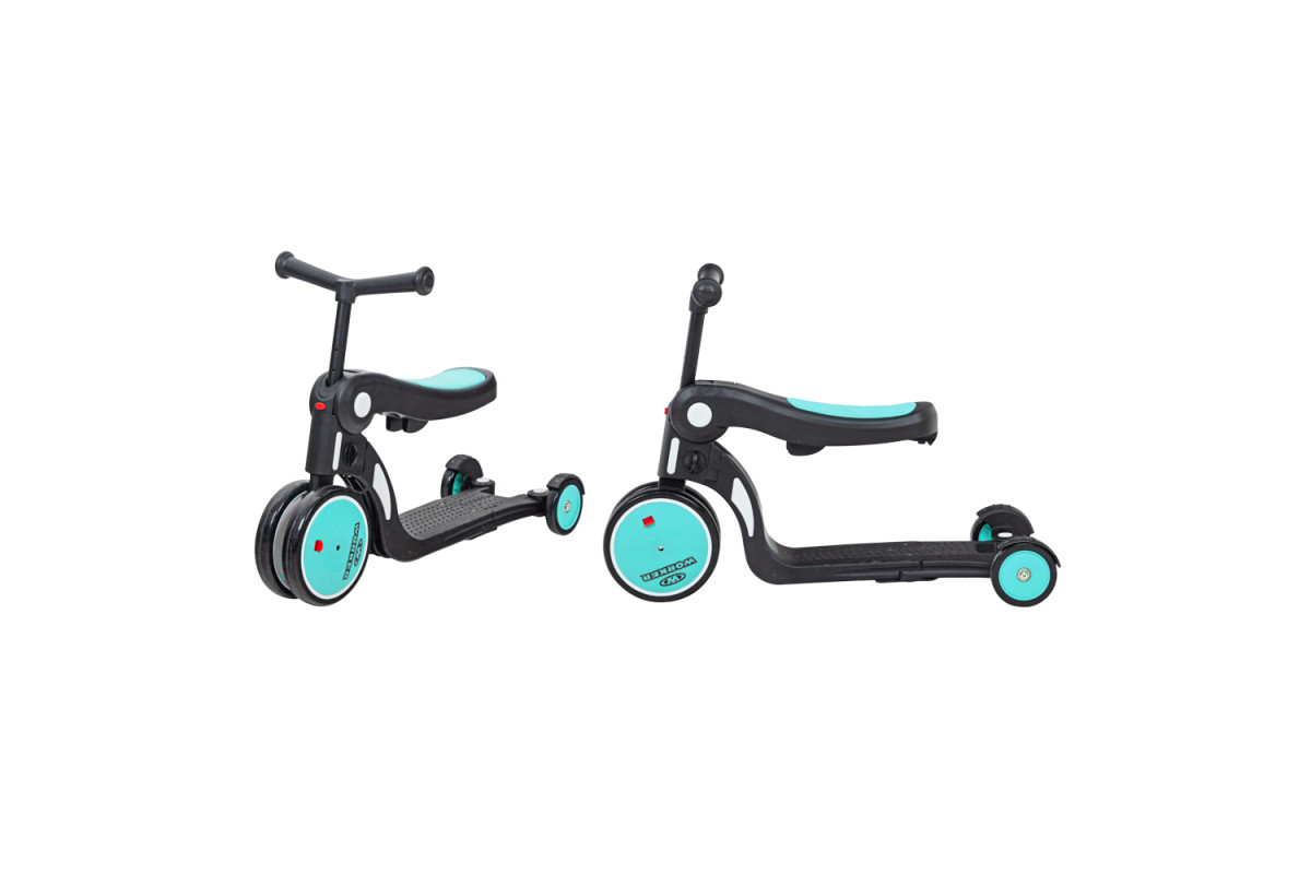 Дитячий багатоцільовий самокат WORKER Finfo 5-в-1 підходить для маленьких велосипедистів, з якими він росте. Карт, балансовий велосипед і самокат в одному — це диво має багато застосувань. Задні колеса можна встановити в трьох різних положеннях, що дозволить вашій дитині розвивати рівновагу та координацію. Переобладнання транспортного засобу з одного автомобіля на інше, а також регулювання положення коліс - це швидко та легко.