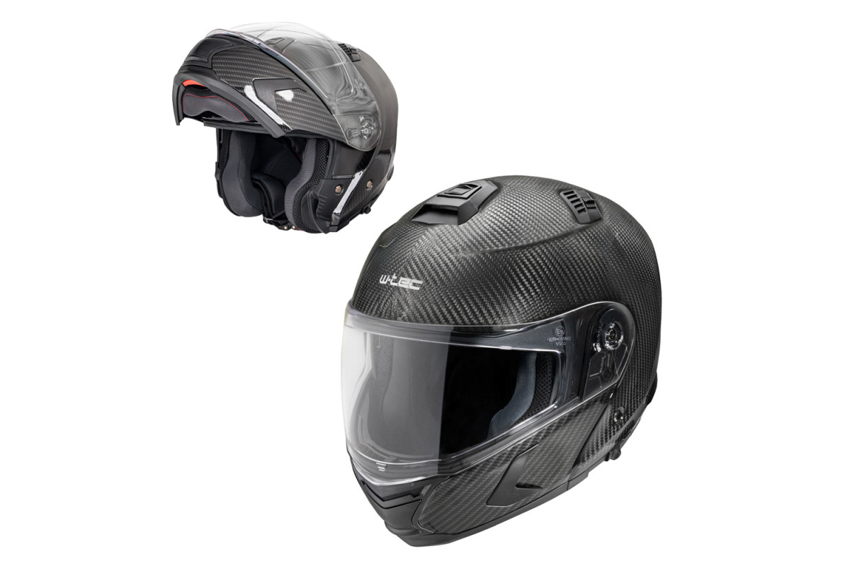Мотоциклетний шолом Flip-Up W-TEC Tensiler — це високоякісний дорожній шолом з оболонкою з вуглецевого скловолокна. Він має захоплюючий аеродинамічний дизайн з багатьма розширеними функціями. Він має не тільки відкидний навіс і передню частину, а й висувний навіс, який забезпечує захист від сонця під час водіння. Сонцезахисним козирком можна керувати за допомогою важеля збоку шолома (навіть у рукавичках).