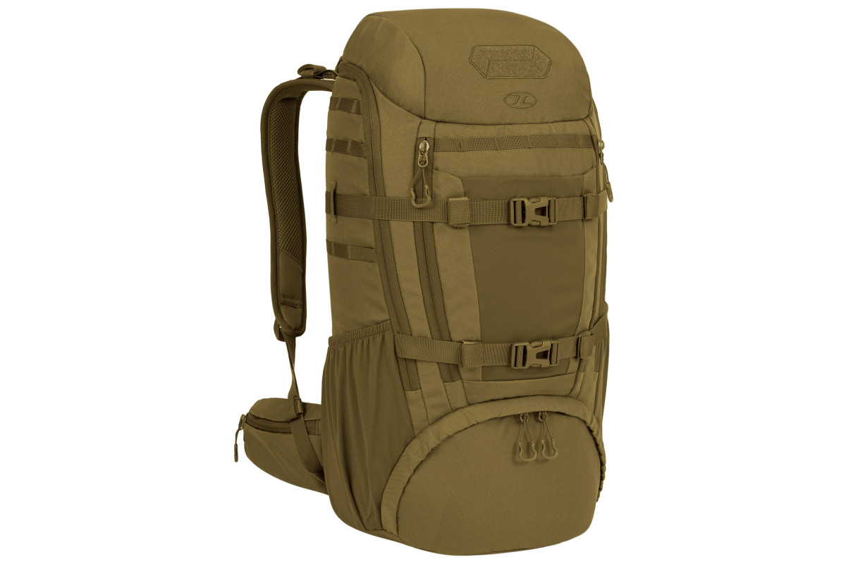Highlander Eagle 3 Backpack 40L Coyote Tan (TT194-CT) - місткий і надійний рюкзак для тривалих виходів. Модель виготовлена із міцного водостійкого поліестеру 600D XTP із поліуретановим покриттям, має систему кріплень MOLLE, велике відділення на блискавках для зберігання спорядження в польових умовах, а також дві еластичні бічні кишені. М'яка спинка, компресійні ремені та ручка для перенесення роблять цей рюкзак зручним для користування. Регульовані лямки з м’якими підкладками та регульований поясний ремінь розподіляють навантаження, щоб забезпечити Вам комфорт під час щоденного носіння. Все це гарантує, що даний рюкзак витримає тривалу експлуатацію.