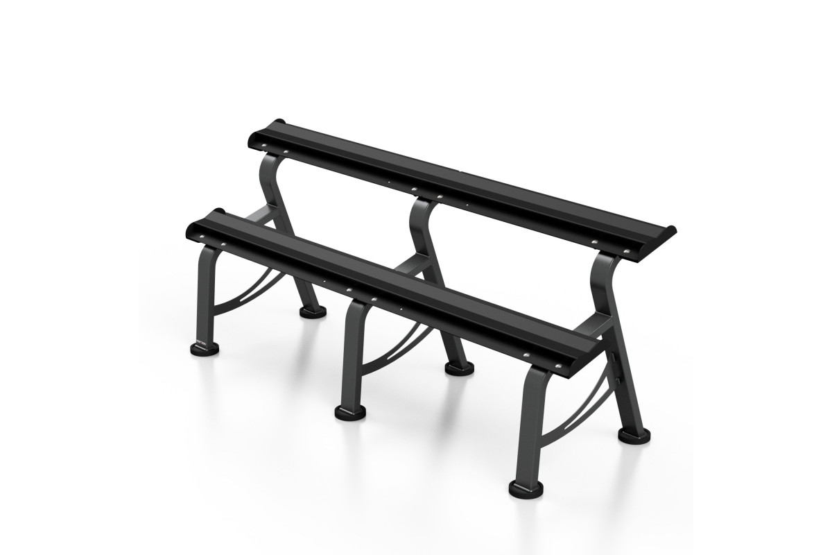 Спортивне обладнання компактно розміщує та забезпечує збереження гантелі. Завдяки тому, що гантелі можна розмістити на стійці за вагою, професіоналам буде легко та швидко вибрати необхідну пару. Конструкція може витримати навантаження, що становить 500 кг.