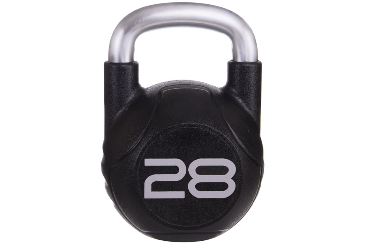 Гиря в гумовій оболонці з хромованою ручкою, вага 28 кг, чорний колір (TA-2681-28) Матеріал: поліуретан (PU), метал. Вага: 28 кг. Діаметр ручки: 34 мм. Колір чорний. Призначення: для тренінгу. Гіря TA-2681-28 c запатентованою конструкцією вигідно відрізняється від традиційних спортивних снарядів з цієї категорії. Тіло гирі виготовлене з поліуретану, який характеризується високою міцністю, стійкістю до деформації, ударів та зношування, а також несприйнятливістю до впливу вологи. За рахунок цих якостей гиря здатна прослужити тривалий час навіть за дуже інтенсивної експлуатації. У ядро вплавлено ручку з високоякісної сталі, яка захищена від корозії хромуванням. Боки гирі зроблені плоскими, що дещо спрощує виконання вправ із нею. Точна вага снаряда задається за допомогою поміщених усередину дрібних дробинок.