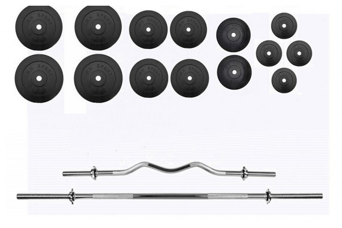 Комплектація: Прямий гриф завдовжки 180 см 1 шт. + 2 гайки. Хромований вигнутий гриф довжиною 120 см 1 шт + 2 гайки. Хромований Млинці з протиударним АБС покриттям 15 кг – 4 шт, 10 кг – 4 шт, 5 кг – 2 шт, 2,5 кг – 4 шт