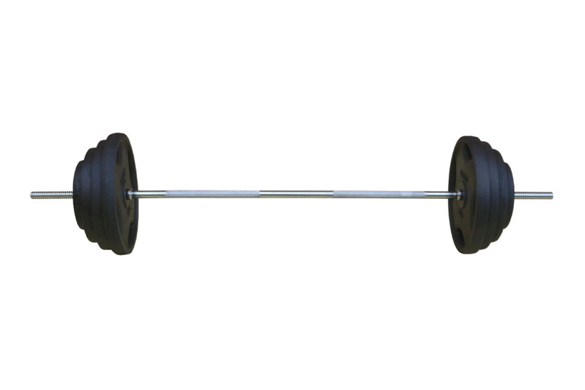 Металева штанга RN-Sport Quatro 85 кг (2х20,2х10,2х5,2х2.5, 2х1.25 + гриф 1.5 м) Quatro-GRIP. Млинці виготовлені із металу. Після обробки, диски розігрівають у печі до температури 180-200 градусів, забарвлюють міцною фарбою і знову запікають до формування міцної кірки. Завдяки дискам вагою 1.25 кг можна тренуватися з мінімальним кроком ваги. Зручності у використанні додає металеві хромовані грифи з насічкою проти ковзання рук та двома затискними гайками, які мають гумові втулки для щільної та надійної фіксації млинців. За допомогою хвата quatro диски 5, 10, 15,20 кг можна використовувати як окремий снаряд для різних вправ (підйоми млинця для зміцнення плечей, обертання млинця навколо корпусу для зміцнення м'язів живота (прес і косі м'язи), жим із-за голови для опрацювання трицепса, вправи для передпліч... ) Крім вправ, диски служать додатковою вагою для штанги та гантелі.