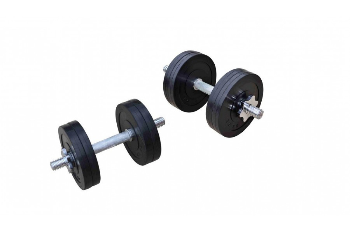 Гантелі розбірні 2 х 11 кг від виробника RN-Sport. Сталеві прогумовані диски на гантелях мають компактний розмір тому з ними зручно займатися і вдома, і в спортивних залах.