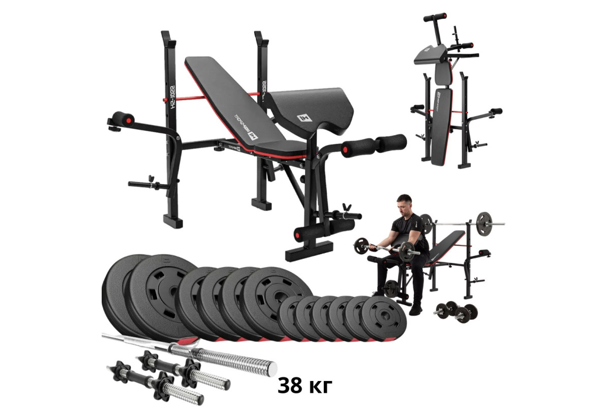 Набір Hop-Sport Premium 38 кг з лавою HS-1055 Pro, штангою та гантелями