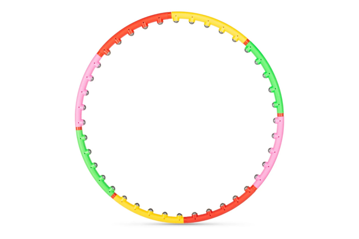 Необхідно кілька хвилин в день і вашу мотивацію для регулярних тренувань - цього достатньо, щоб помітно схуднути , набути привабливих форм і поліпшити кровообіг. Хулахуп виготовлений з високоякісного удароміцного пластику, що говорить про високі експлуатаційні якості цього аксесуара. Діаметр обруча 95,5 см робить його доступним для всіх, незалежно від тілобудови. Хулахуп складається з 8 сегментів, які можна дуже швидко склати і розкласти, що є надзвичайно зручно у випадку якщо ви бажаєте взяти обруч для тренування поза домом, у спортзал, або якщо є потреба скласти з інших причин. На внутрішній стороні знаходиться 40 кульок, які забезпечують додатковий ефект масажу. Для кращих результатів тренувань масажні кульки цієї моделі обруча можна наповнити, наприклад, піском.
