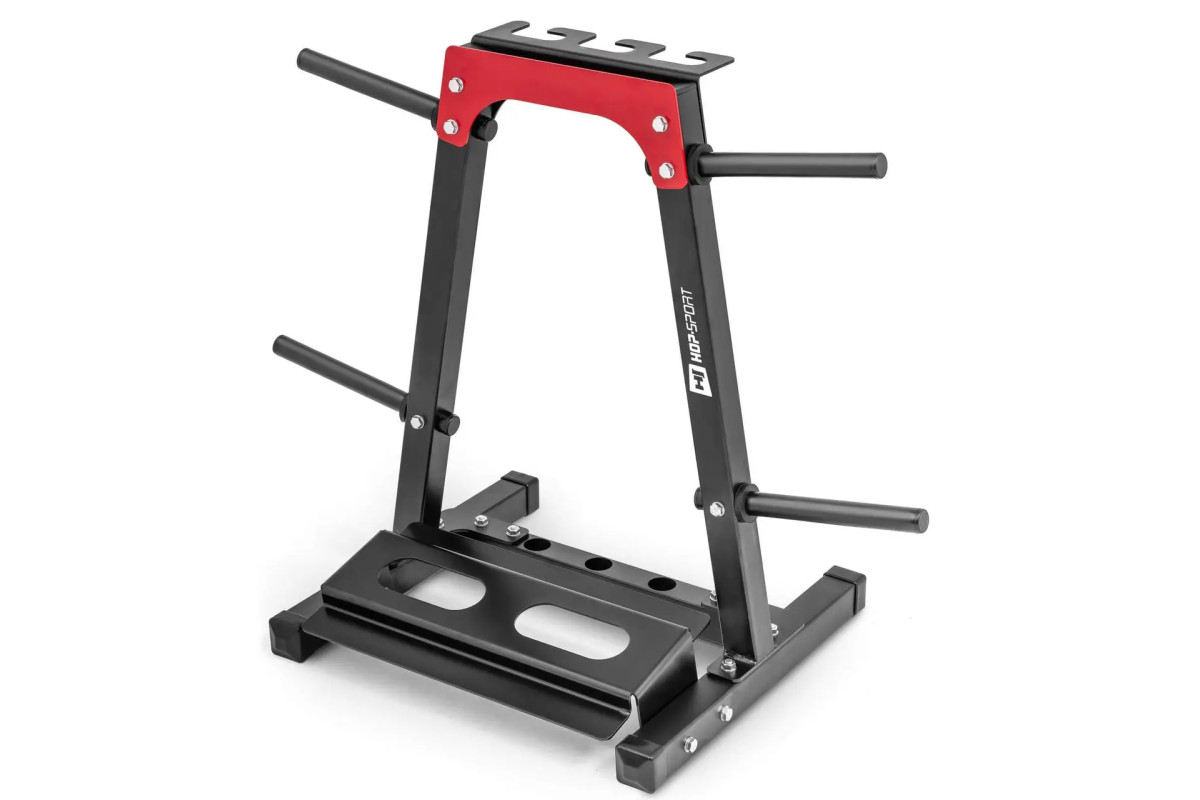 Ви тренуєтеся комфортно з Hop-Sport! У HS-1008A у вас є чотири стрижні для розміщення дисків. Кожен зі стрижнів має довжину 20 см і діаметр 25 мм. Крім того, кожен з них оснащений гумовими упорами, завдяки яким диски не будуть контактувати з основою стійки.