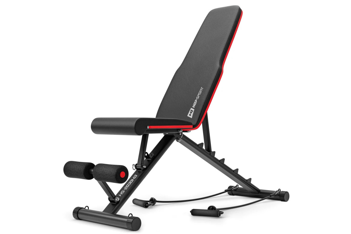 Лавка 2030HB від Hop-Sport - універсальна і функціональна окремо стояча лавка. Регульовані спинка і сидіння, а також фіксатор для ніг, дозволяють тренувати різні групи м'язів. У комплект входять еспандери для проведення розминки і ще більш ефективних тренувань. Додатковою перевагою даної моделі є можливість складати її після тренування.
