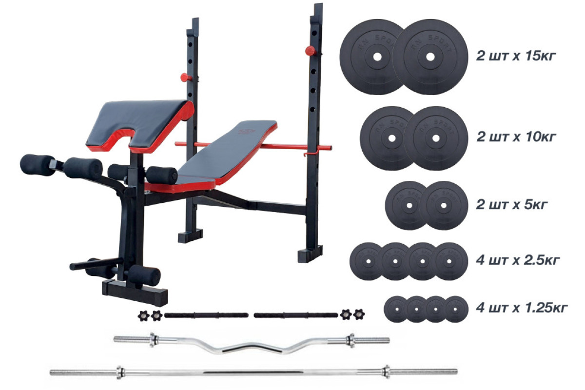 Лава для жиму ReadMeBlack + Штанга 83 кг, гриф W, гантелі RN-Sport