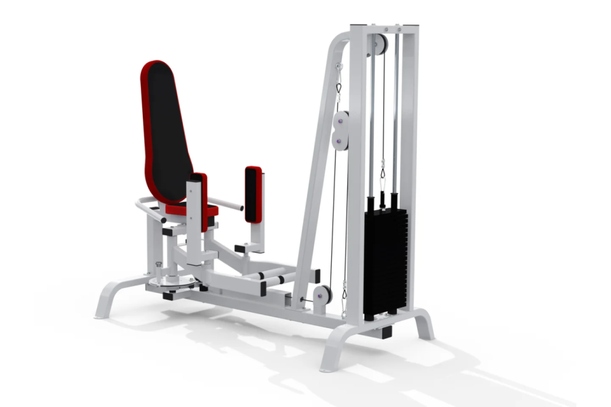 Зведення і розвідні ніг для м'язів стегна, що приводять і відводять. Тренажер відноситься до ізолюючих вправ, а саме, спрямованих на опрацювання однієї групи м'язів. Цей тренажер є одним із улюблених тренажерів для жіночої половини, тому що дозволяє опрацювати ті м'язи ніг, які в інших вправах або тренажерах не задіяні і майже немає альтернатив. Для високої ефективності опрацювання м'яза потрібен спеціальний тренажер - тренажер зведення та розведення ніг з цілеспрямованим навантаженням, з можливістю регулювати вагу обтяження. Зручні та міцні ППУ сидіння обшиті на тканинній основі шкірозамінником. Рама пофарбована порошковою фарбою, що має значну стійкість до пошкоджень. Всі поворотні механізми, що крутяться, забезпечені підшипниками для довговічної плавної роботи. Вага вантажного блоку складає 105 кг, із плитками по 5 кг. Направляючі з нержавіючої сталі також відіграють важливу роль у плавності ходу вантажу. Загалом ресурс тренажер виготовлений із запасом та виконує всі заявлені характеристики, а також опрацює більше гарантійного терміну при мінімальному обслуговуванні. Та ж м'яка частина тренажера при акуратному поводженні залишається цілою навіть через 5 років роботи інтенсивної експлуатації у спортивних залах.