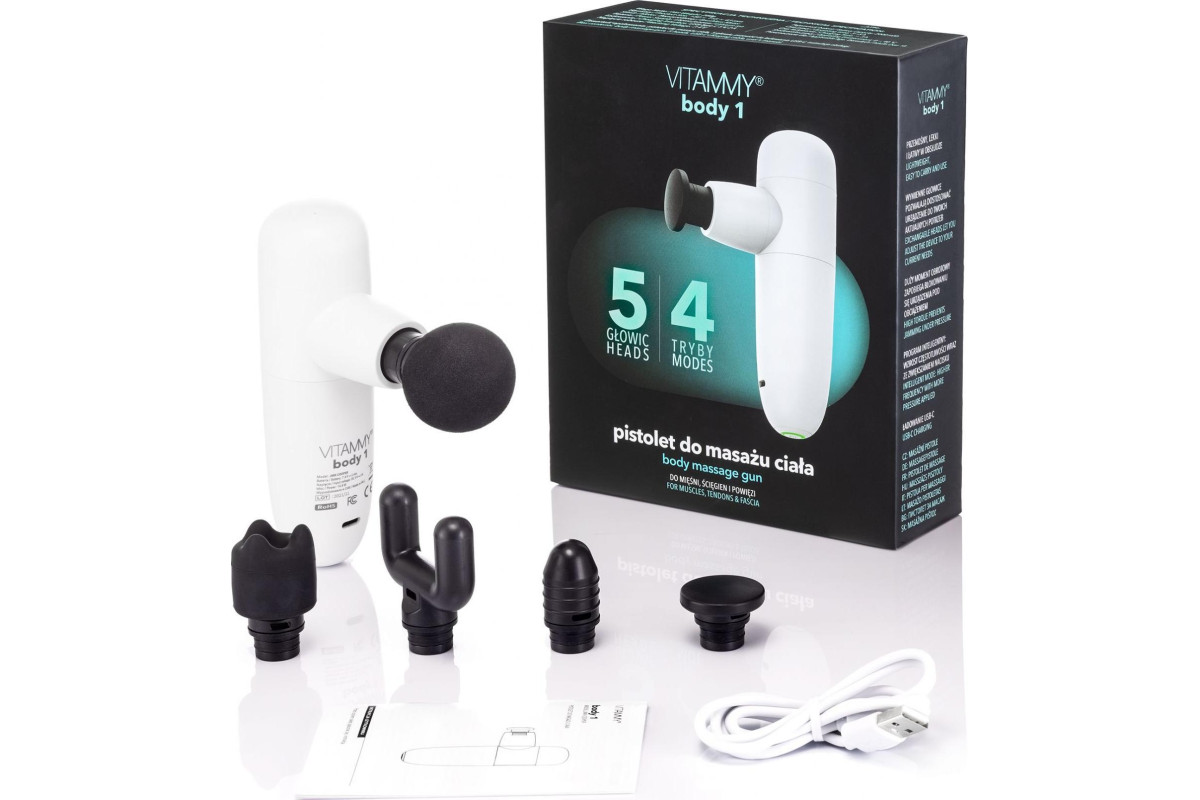 Ручний або пістолетний масажер - це прилад, який дозволяє самостійно виконувати масаж.VITAMMY BODY 1 розслабляє м'язи та їх напругу, прискорює регенерацію, зменшує хронічний біль і покращує роботу кровоносної системи. Він невеликий, тому з його зберіганням проблем не виникне. Його вибирають спортсмени, які часто страждають від травм. Дуже часто використовується в реабілітаційних кабінетах і спортзалах.