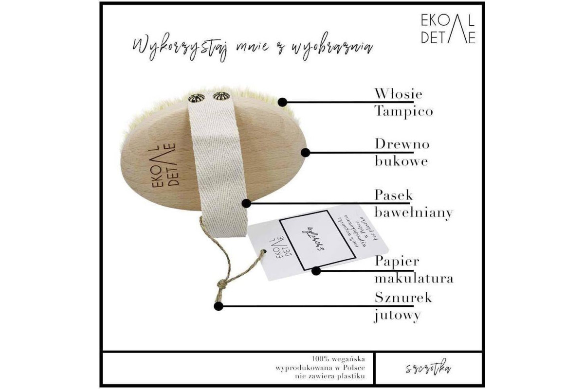 Це природно, але це можна виправити. Розчісування тіла стимулює його до роботи. Гостра щетина агави: - відкриває пори, стимулює кровообіг, тим самим покращуючи оксигенацію шкіри - натирає епідерміс, полегшуючи вихід врослого волосся, а мозоляста шкіра стає м'якою та еластичною - стимулює роботу лімфатичних каналів, через які організм позбавляється очищає кров і внутрішні тканини від токсинів. В аюрведичній медицині це називається масажем Гаршана. Для нього використовуються кисті агави або гостра шовкова рукавичка. Ритуал, якому ми піддаємо тіло, також покращує нашу енергетику, тому такий масаж варто робити вранці, перед прийняттям ванни. А після процедури проведіть ритуал Аб’янга, тобто змащення тіла маслом. Як робити масаж тіла? - знизу вгору ковзаючими, тривалими рухами. Рухи до серця, тобто відповідно до лімфотоку, повинні бути сильними і розмашистими. Як часто потрібно чистити шкіру? - бажано вранці перед купанням, але не рідше 3 разів на тиждень - ефект розгладження видно після 3-4 розчісувань Щітка - наші щітки виготовляє для нас польська компанія. Витримана деревина походить із польських лісів. Ми приділяємо увагу якості та деталям. Ви відчуєте це, беручи до рук кожен продукт. Ми знаємо, що пензлів багато. Ми протестували багато з них. Також ті з Далекого Сходу, які, на жаль, найчастіше шипуються в пластик, а не безпосередньо в дерево.