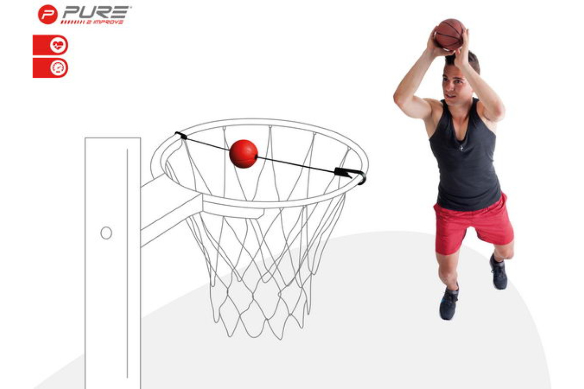 Червоний м'яч знаходиться точно в центрі кільця, над сіткою. Позначає місце, куди гравці повинні цілитися, щоб досягти точного чистого кидка. Ідеальний пристрій для тренування влучності.