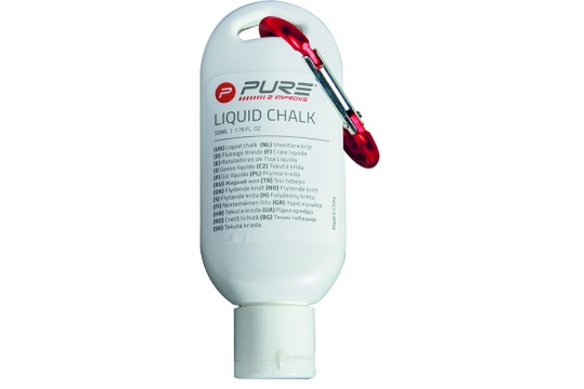 Pure 2Improve Gym Chalk Liquid, 50 мл, це рідина, яка наноситься на руки або ноги, щоб покращити захоплення та зменшити потовиділення. Рідка крейда не потрапляє на обладнання, на відміну від традиційної порошкової крейди, яка залишає плями від порошку на одязі.