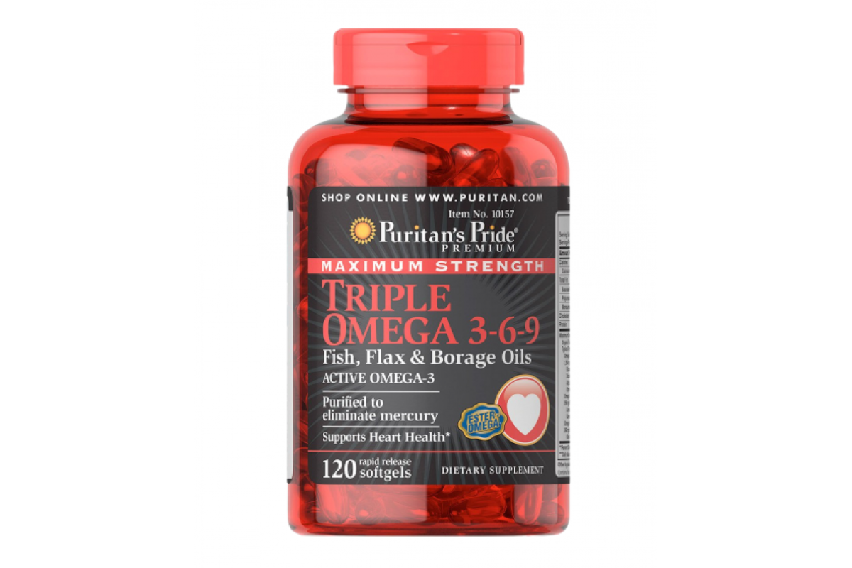 Triple Omega 3 6 9 Fish Flax Borage Oils - 120 Softgels