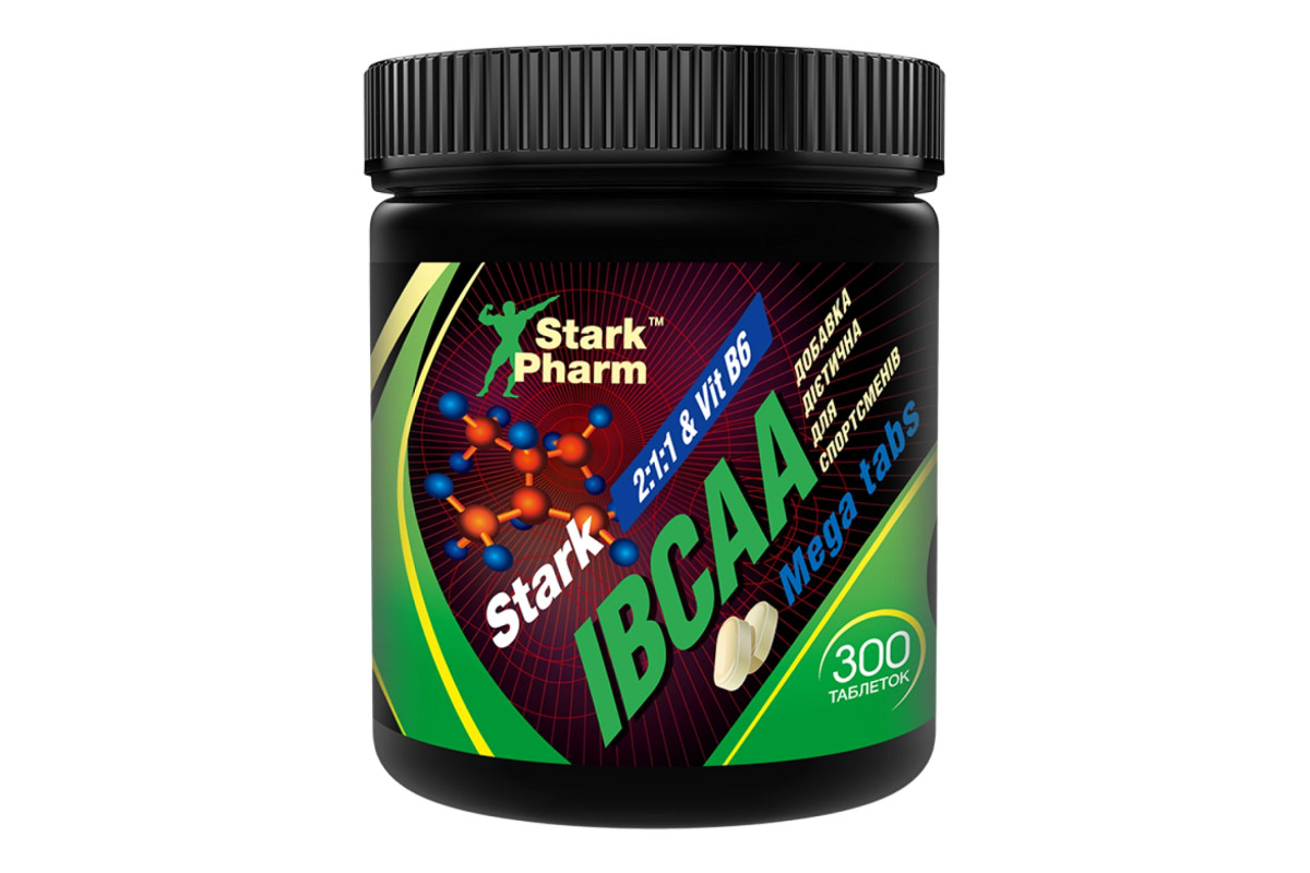 Харчова добавка Stark IBCAA 2-1-1 & B6 Mega tabs містить інстантизовану форму амінокислот BCAA 2:1:1 у таблетках, доповнену вітаміном B6. Добавка складається із чистих BCAA – трьох незамінних амінокислот, які організм не може виробляти самостійно. Це лейцин, ізолейцин і валін у пропорційному співвідношенні 2:1:1 – це класичний варіант добавки, що підходить і дуже ефективний для будь-якого періоду тренувань. Амінокислоти BCAA сприяють набору сухої м'язової маси та запобігають катаболізму.