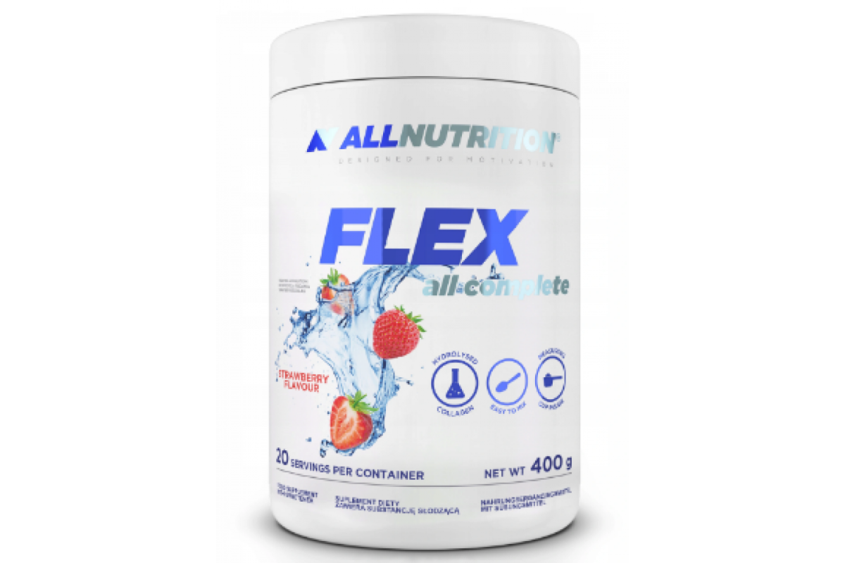 Переваги Flex All Complete профілактика від травм суглобів, хрящів, сухожиль, зв'язок; прискорює загоєння після травми; покращує рухливість суглобів; не містить барвників; містить лише перевірені та безпечні інгредієнти. Опис до Flex All Complete Flex All Complete – харчова добавка, основним інгредієнтом якої є гідролізований колагеновий білок, що підтримує здоров'я кісток, хрящів та суглобів. Цей вид білка становить основу сполучної тканини організму (сухожилля, кістка, хрящ тощо) і забезпечує її міцність та еластичність. Крім того, Flex All Complete доповнений рядом допоміжних компонентів, таких як глюкозамін, магній, метилсульфонілметан, вітамін С, які сприяють належному засвоєнню колагену. Склад Flex All Complete Розмір порції: 1 совок (20 г) Склад на порцію % Д.М. Калорії 59 Жири 0 г Насичені жири 0 г Вуглеводи 5,8 г Цукор 1,6 г Клітковина 0 г Білок 9 г Сіль 0 г Гідролізований колаген 10000 мг L-пролін 1200 мг Глюкозамін сульфат 300 мг M0 3 Магній 60 мг 16% Вітамін В6 5 мг 357%