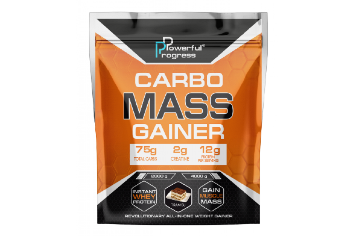 Сarbo Mass Gainer від бренду Powerful Progress – високоефективний гейнер із високим вмістом вуглеводів, достатнім вмістом білка, креатину та комплексом амінокислот. Цей продукт розроблений саме для тих новачків спорту, для яких нарощування якісної м'язової маси головна мета. Формула гейнера містить мінімальну кількість смакових добавок та ароматизаторів, тому цей продукт можна сміливо назвати справді натуральним. Варто додати, що протеїн містить виключно натуральний концентрат білка, який виготовляється з молока на німецьких молочних фермах, а також натуральні смакові добавки відомої німецької фірми Condetta, роблячи вуглеводно-білковий коктейль ніжним, легким і неймовірно смачним. В одній порції вдалося сконцентрувати 12 г чистого білка, 2 г моногідрату креатину і цілих 75 г вуглеводів різної складності, що дозволяє набрати якісну м'язову масу навіть новачкам спорту. Гейнер містить 80% концентрату сироваткового білка з підвищеним ступенем очищення. Для підвищення ефективності гейнера до нього додана цінна амінокислота - L-глютамін, яка допомагає швидко відновлювати організм після тренувань. Ще одна цікава особливість Carbo Mass Gainer – це велика кількість у складі різноманітних вітамінів, корисних організму речовин та мінералів. Ключові переваги гейнера Carbo Mass Gainer: 12 грам білка, 2 г креатину та 75 грам вуглеводів на порцію. Відсутність лактози та глютена. 25 видів вітамінів та амінокислот. Натуральні смакові добавки та компоненти німецького виробництва. Склад в одній порції (100 г): Енергетична цінність - 388 ккал Жири - 4 г ненасичені жирні кислоти - 1 г Вуглеводи - 75 г цукор - < 4 г Протеїн - 12 г Натрій - 140 мг Холестерин - 15 мг 2 рази на день між їдою і 1 раз після тренування. у дні відпочинку 2 рази на день між їдою.