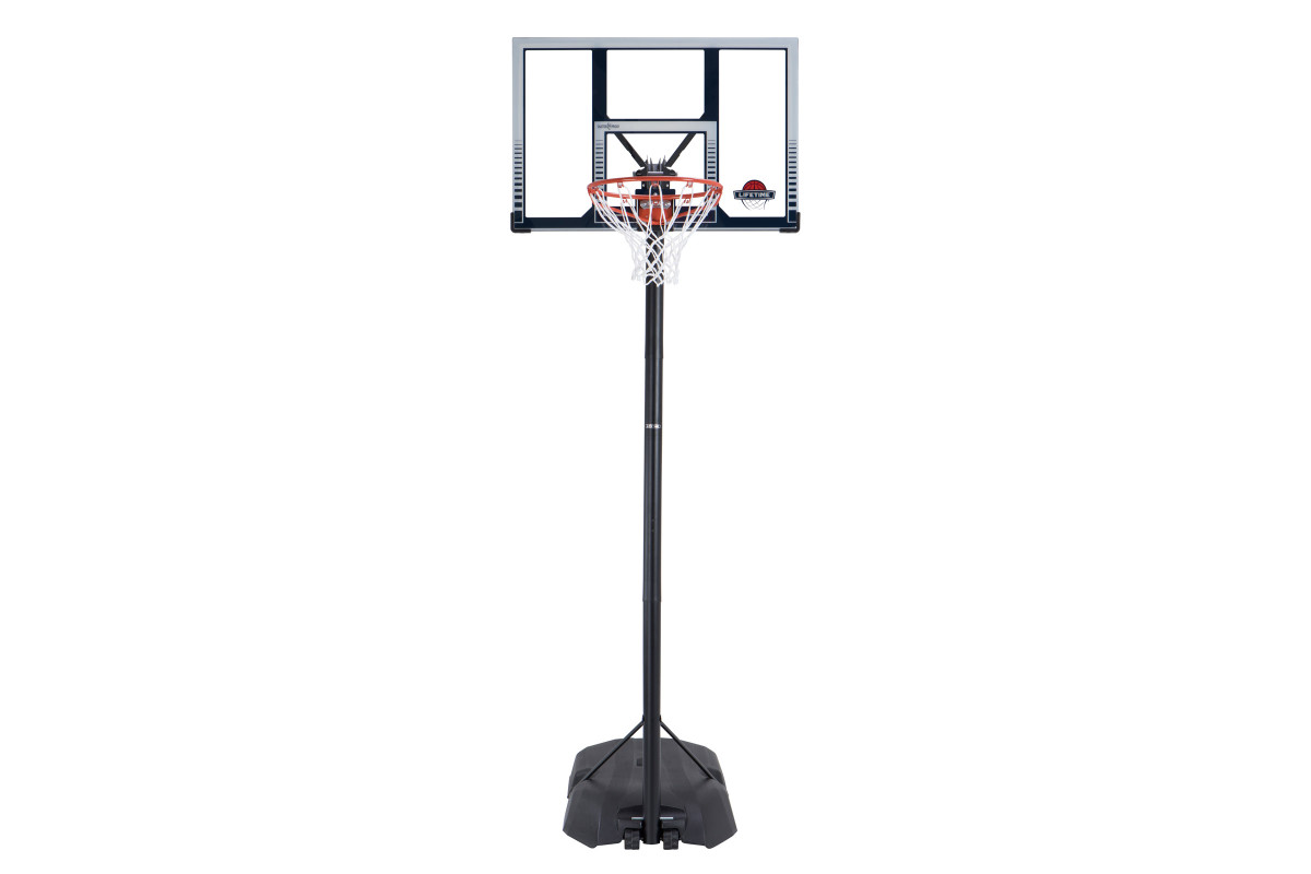 Переносна баскетбольна стійка має 44-дюймовий щит, виготовлений за технологією Steel-Framed Shatter-Proof. Технологія Shatter-Proof гарантує тривалу довговічність і стійкість до ударів завдяки покриттю з полікарбонату Makrolon® найвищої якості.