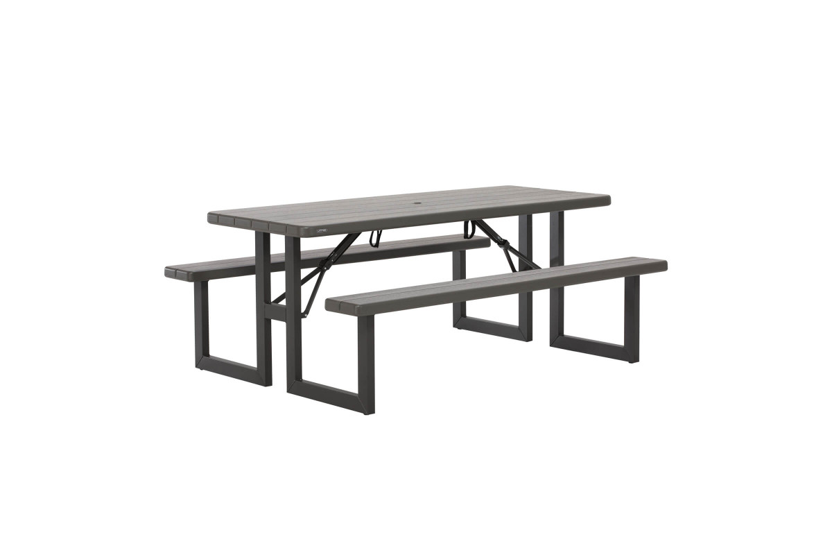 Складний набір для пікніка Lifetime — це додаткове місце, де можна поїсти та посидіти на вулиці. Завдяки своєму коричневому кольору він чудово впишеться в декор Вашого саду. Лавки і стіл з'єднані каркасом. Це робить набір дуже стабільним. Стільниця та лавки виготовлені з поліетилену високої щільності (HDPE), що робить їх дуже міцними. Крім того, вони були покриті покриттям, яке захищає від ультрафіолетового випромінювання, що робить їх більш стійкими до пошкоджень. Рама виготовлена зі сталі з порошковим покриттям, що захищає її від іржі. У складеному вигляді набір стає абсолютно плоским, завдяки чому його можна легко сховати. Ви завжди можете вирішити, як ви хочете використовувати простір свого саду.