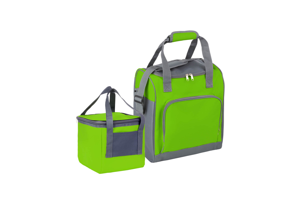 Більша з сумок має три жорсткі стінки і одну м'яку, завдяки чому вона не буде створювати дискомфорту при носінні на плечі. Спереду є додаткова кишеня на блискавці, в яку можна помістити столові прибори або навіть невелику тарілку. Сумка має об'єм 25 л, що означає, що ви легко помістите в неї більше їжі, коли збираєтеся в подорож. Крім плечового ременя, сумка також має ручки для зручного носіння.