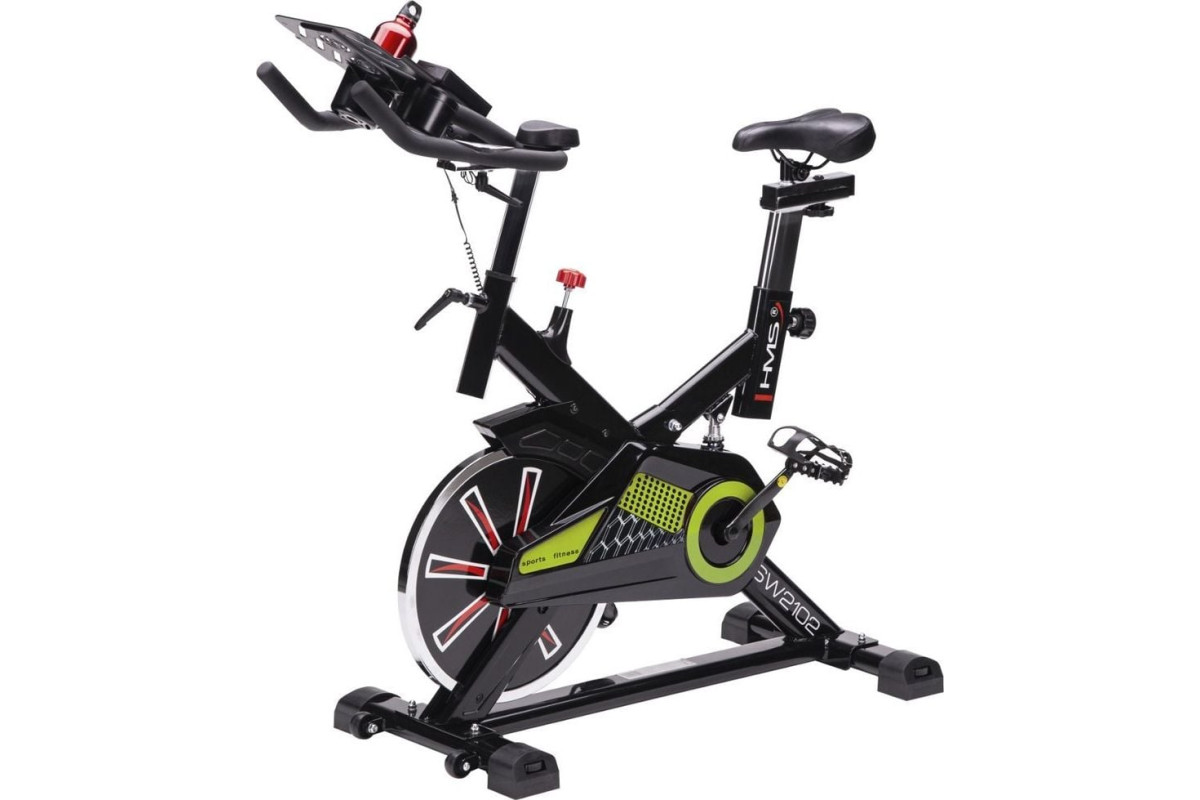 Велотренажер спінінговий механічний HMS SW2102 зелений. Це різновид механічного велосипеда. Регулювання навантаження здійснюється поворотом ручки, а опір забезпечується механічною системою. Ручка для установки опору, також виконує роль гальма - для її використання необхідно натиснути до повної зупинки, маховик вагою 15 кг.