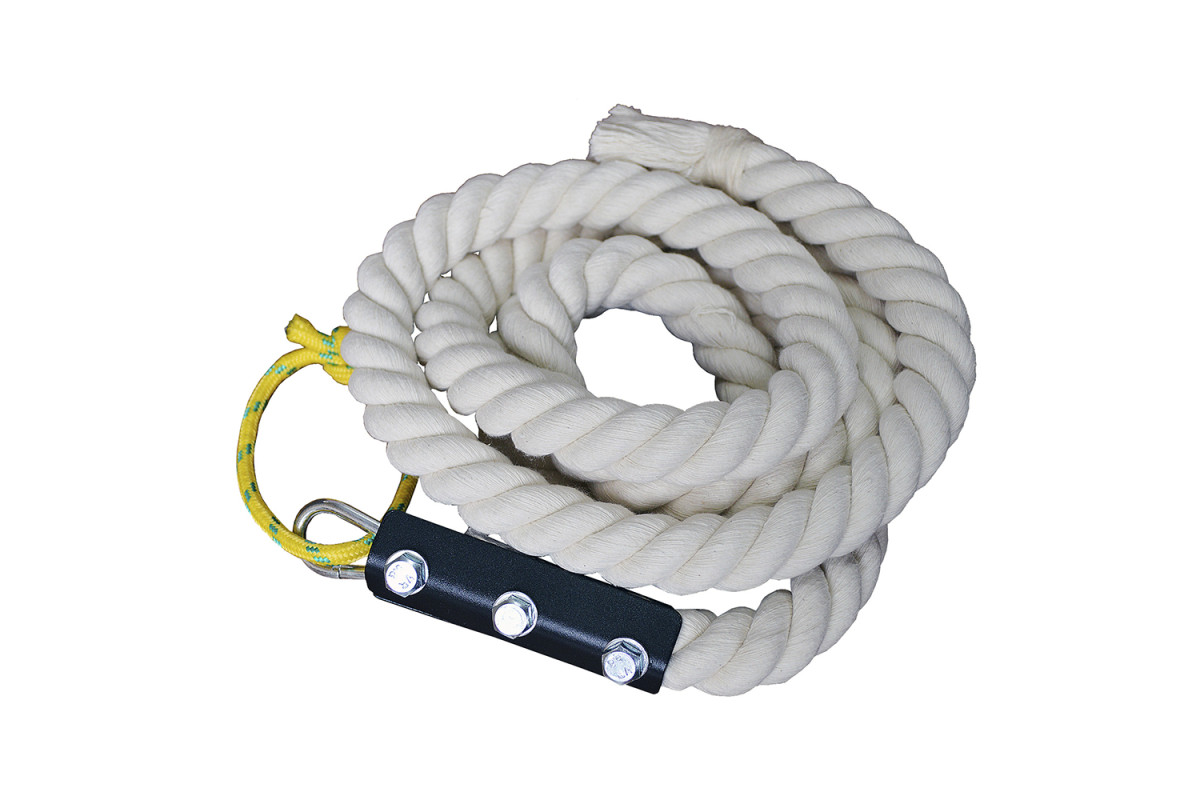 Для кріплення каната в комплекті передбачений карабін, за допомогою якого можна підвісити канат за будь-якої гак або скобу на відповідної надійної конструкції.