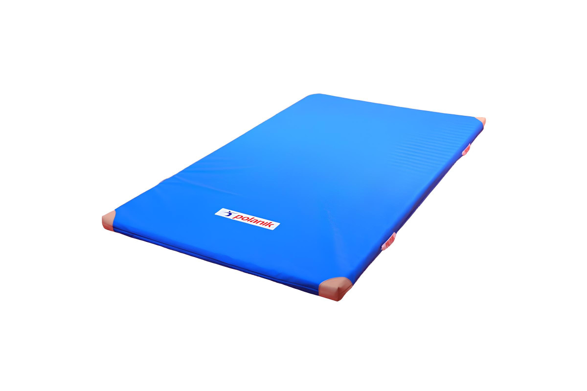 Мат гімнастичний двосторонній Polanik, 200 х 100 х 5 см, синій професійна лінія. Зовнішня частина виготовлена із міцної нековзної тканини ПВХ. Двосторонній мат призначений для тренувань у спортивному взутті. Ручки в комплекті, кути мату з натуральної шкіри.