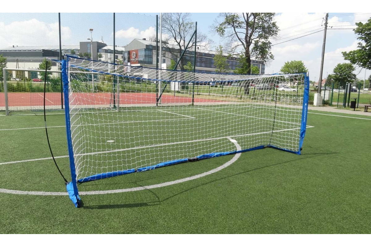 Каркас воріт виготовлений із міцних матеріалів, що забезпечують стійкість навіть під час інтенсивної гри. Вага близько 15 кг і комплект спеціальних кріплень дозволяють надійно зафіксувати ворота на різних типах покриття — як на натуральному газоні, так і на штучній траві, в залі чи навіть на бетоні. Завдяки цьому ворота залишаються стабільними у будь-яких умовах.