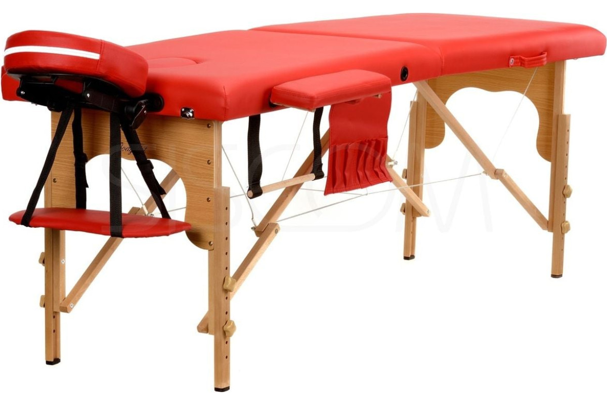 Масажний стіл Bodyfit 2-сегментний дерев'яний, червоний